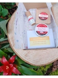 Contains 3 products in a brown Kraft gift cardboard box (that can be reused, recycled or composted):